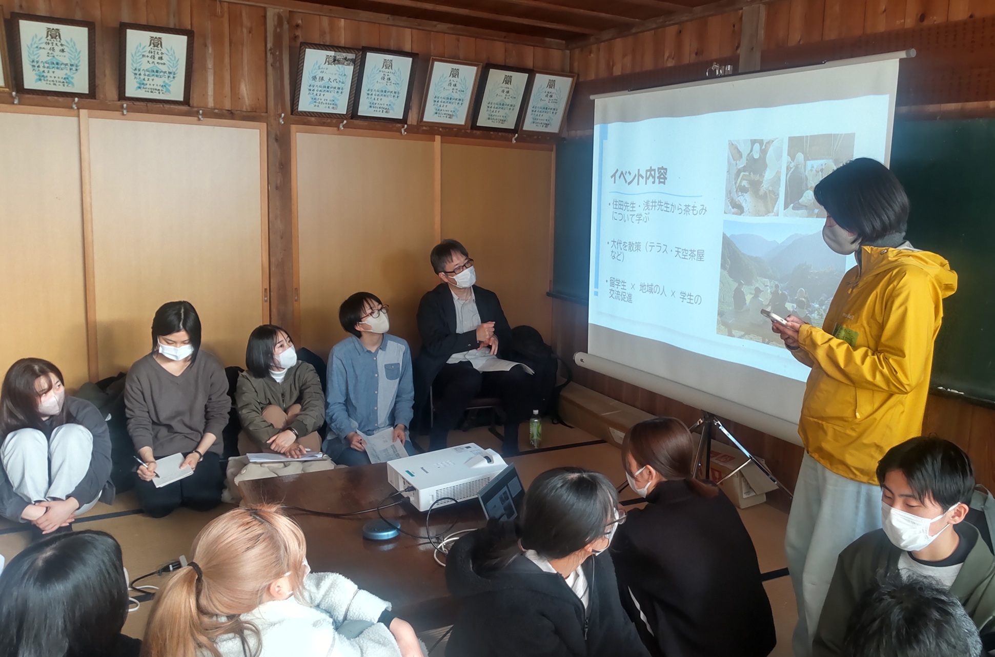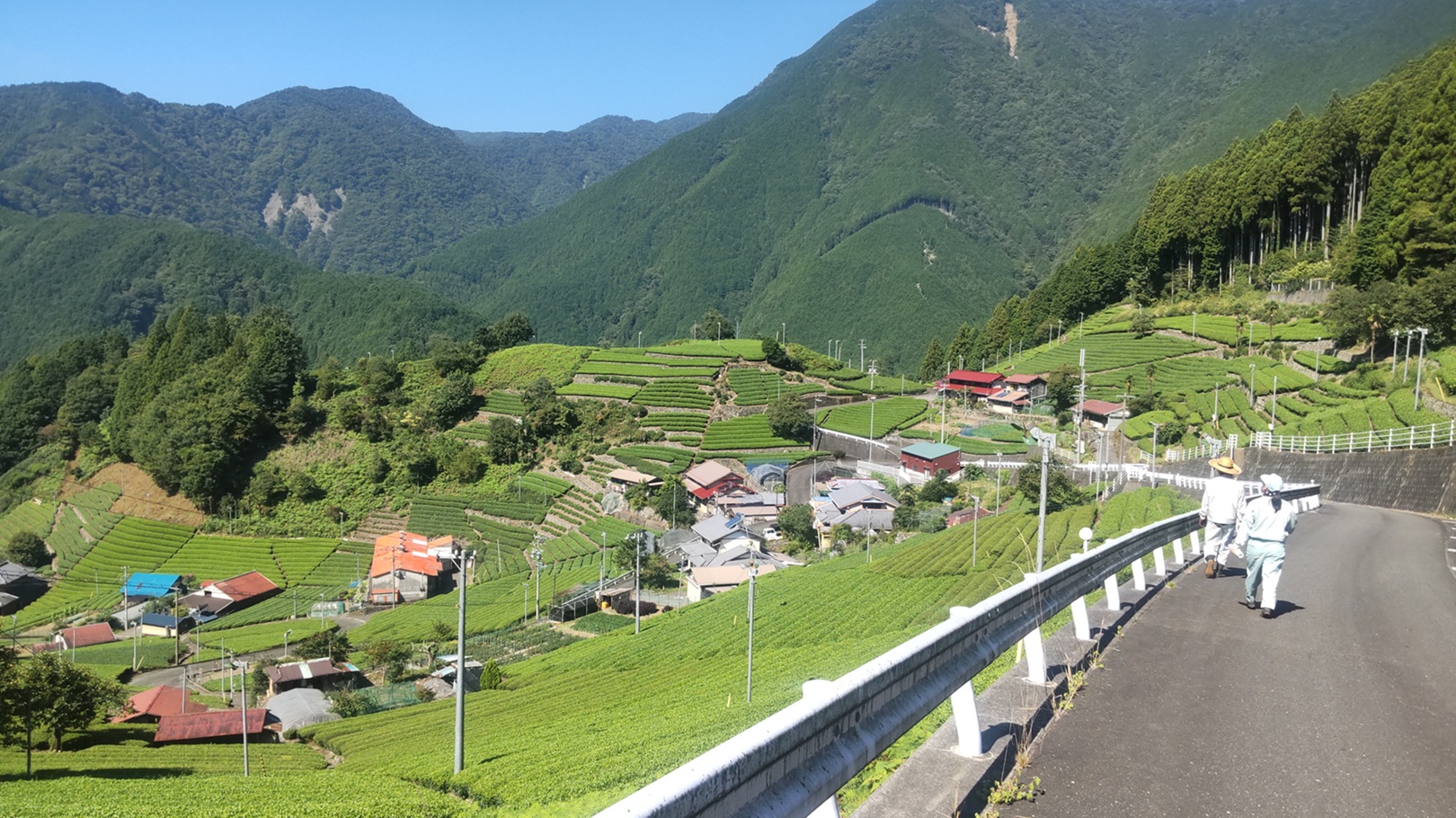 大代地区は標高約720mの山の頂上に約10世帯、30名程が住む村であり、住民の高齢化が進んでいます。村の大部分は茶畑であり、茶の他にトマト、シイタケ、ワサビ、菊などを生産しています。現在、観光化を進めながら地域に新たな雇用と産業を生み、美しい景観と農業・生活環境を次世代につなげようとしています。