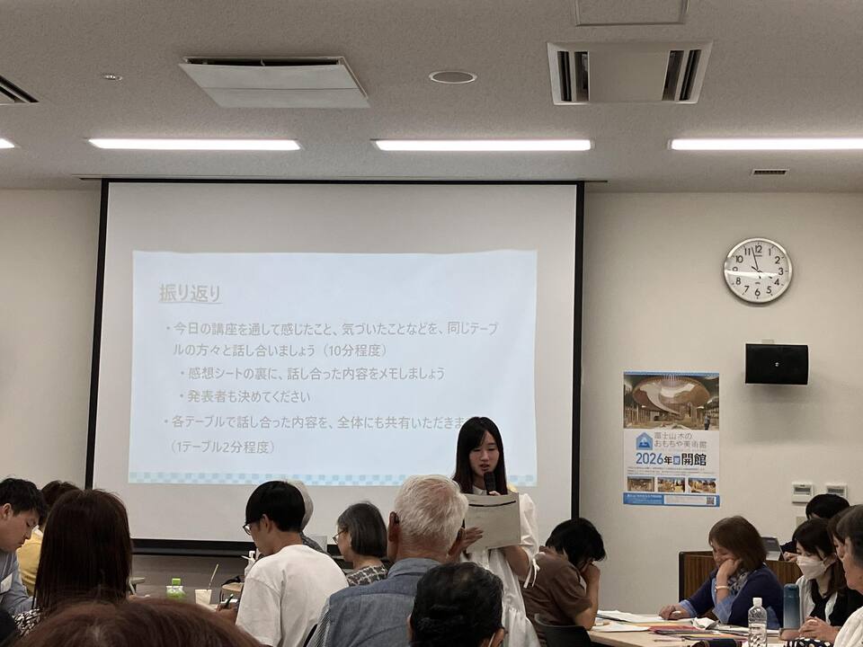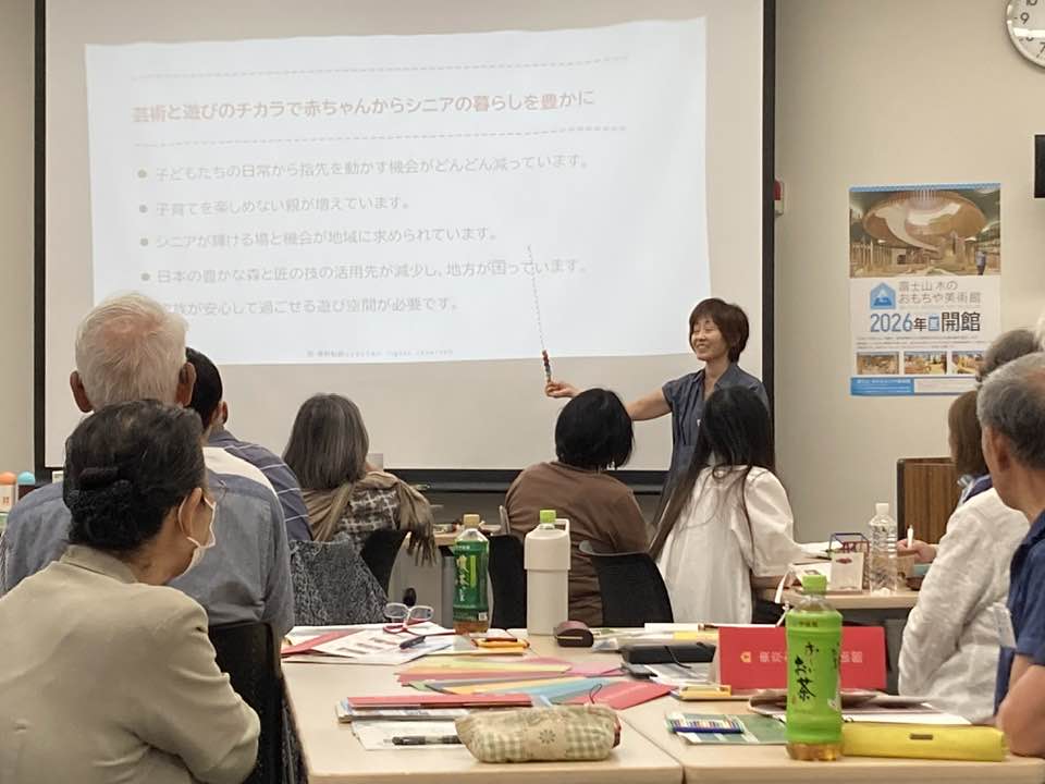 プログラムの主たる講師は、東京のおもちゃ美術館の運営、系列の全国各地のおもちゃ美術館の企画・監修をやってこられ、富士山木のおもちゃ美術館の監修をされているリーダー・サブリーダーの方。