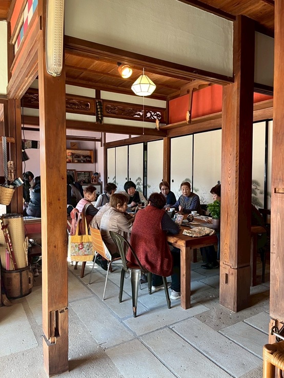 そして、午後からは地域の合唱サークルの方たちが10名いらっしゃいました。古民家には地域の人から譲り受けた電子ピアノがあるので、伴走にあわせて皆で大合唱が始まりました。学生達は知らない歌が多かったようですが、リズムに合わせて踊っている姿も見られました。
