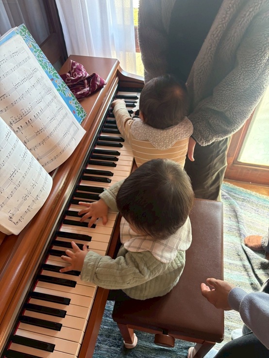 まず、1歳の赤ちゃんを連れた近所のお母さんが2人来てくれました。学生達も赤ちゃんと接する機会はなかなかないので大興奮でした。ピアノの音に嬉しそうに反応する姿が最高にかわいかったです。