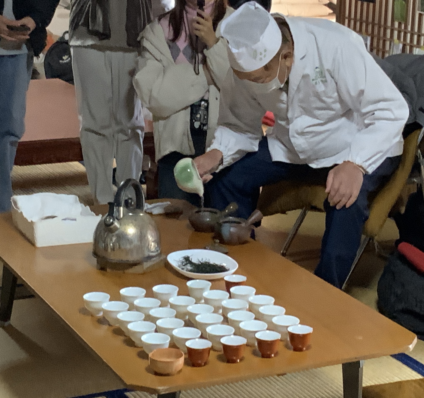 当日は、静岡県内唯一の手揉茶永世名人であり、「永世茶聖」の称号をお持ちである住田惠朗先生と、茶手揉師範の浅井辰夫先生にお越しいただき、お茶の淹れ方やお茶の手揉みの工程についてご指導いただきました。