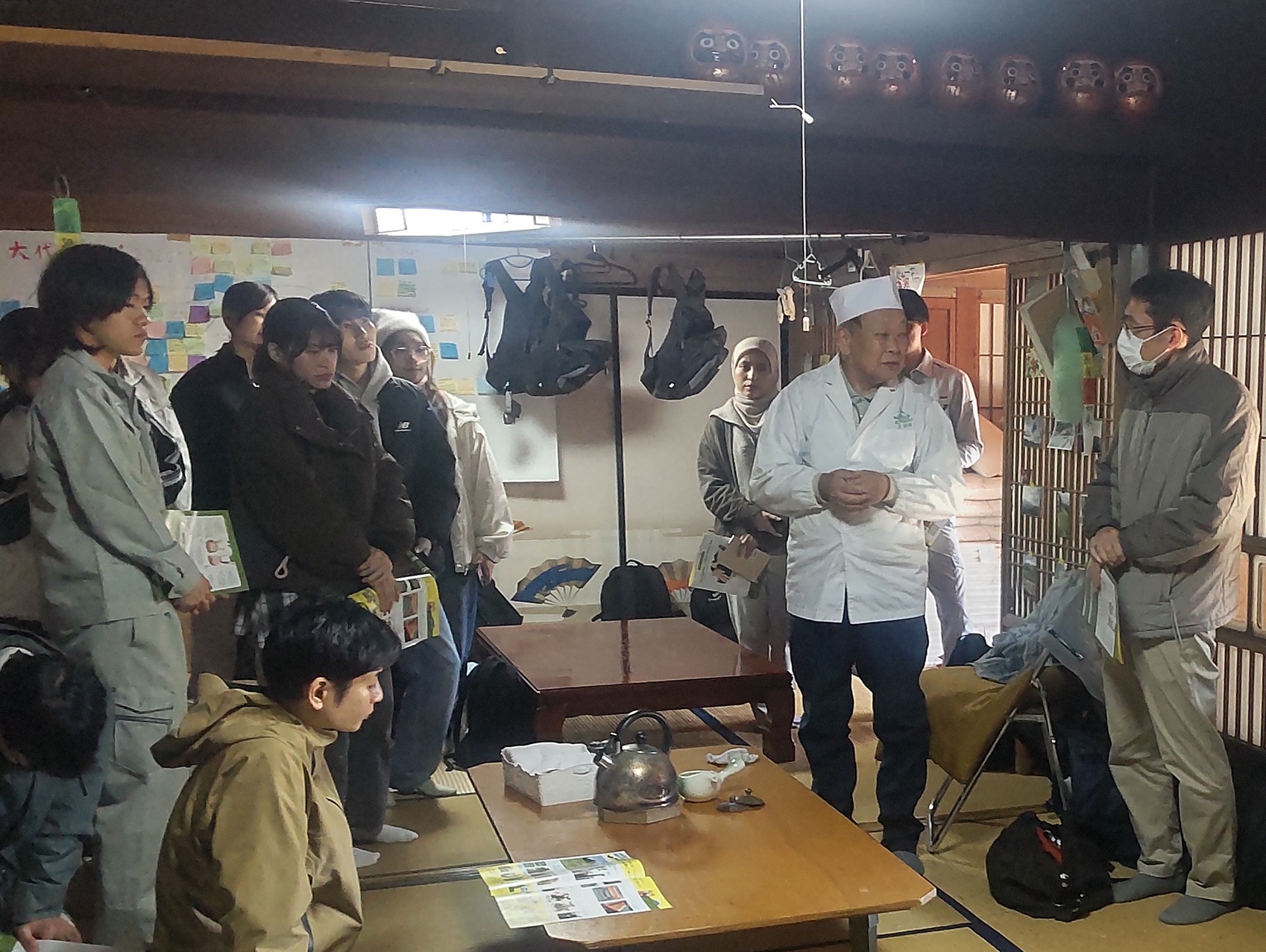 手揉みの時間は約2時間半で、その間、手揉み体験を通して手揉みの先生方や日本人学生、留学生の会話が弾み、交流が深まりました。その後、日本人学生たちは留学生とともに大代地区を散策しながら、大代地区の観光地としての見どころを説明しました。そして最後に留学生にアンケート調査に回答してもらいました。その調査結果は、これからの活動に生かす予定です。