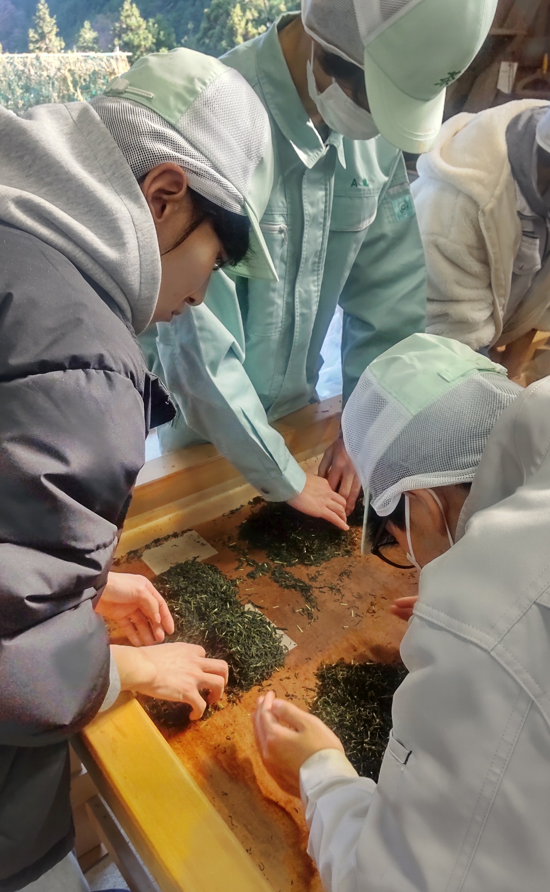 今回の茶手揉み体験会に合わせて、ワーク3の学生が中心となってこの体験会に4名の留学生を招くという企画を練りました。農家さんたちが大代地区で今後も茶生産を継続していくためには茶の販売価格の向上が不可欠ですが、現在、お茶の海外需要が伸びていることから、静大の留学生を大代地区に招いてお茶や地区を体験してもらい、どのような魅力を感じたのかを聞かせてもらおうと考えたのです。