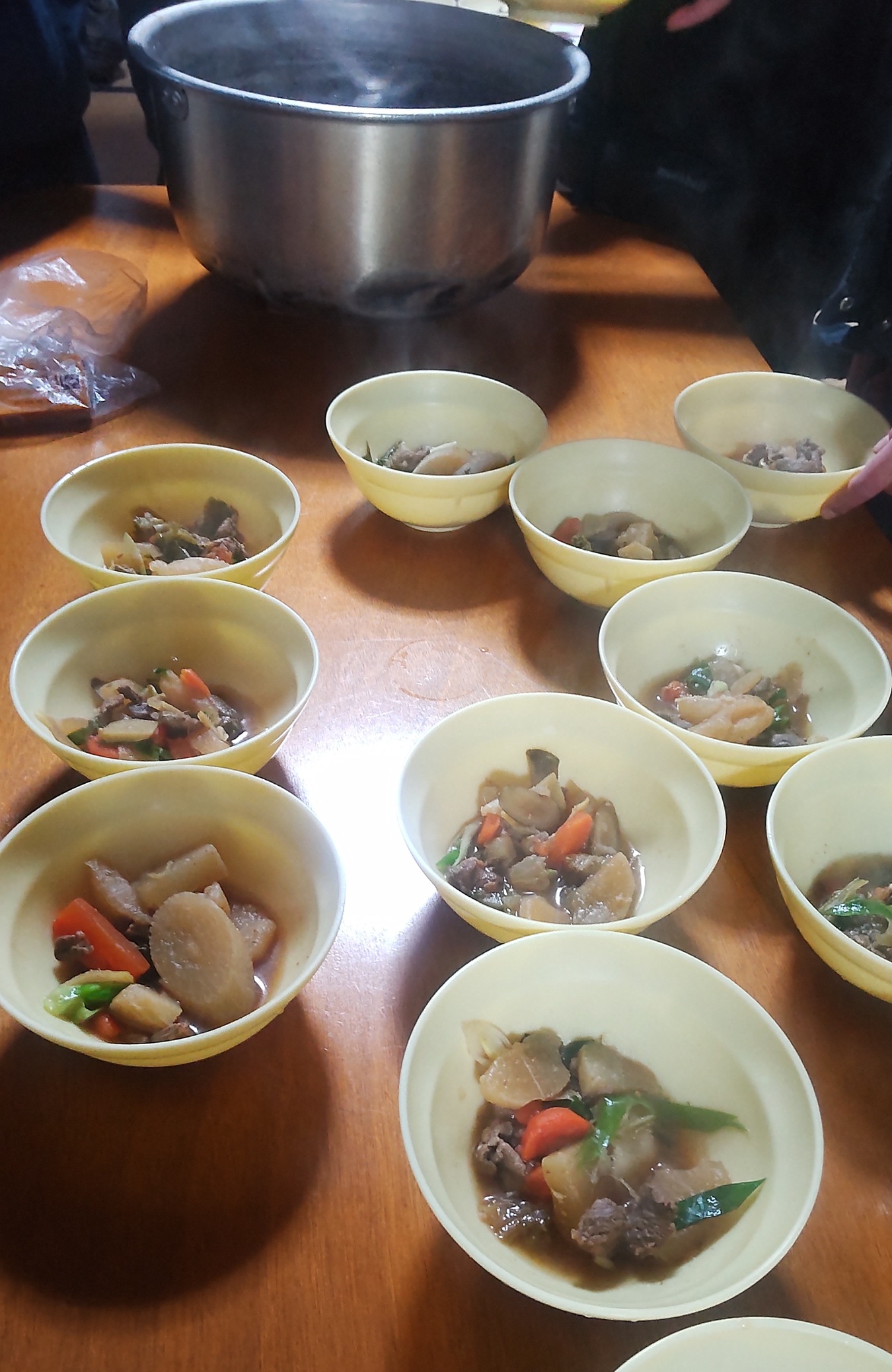 2つの掃除を行ったあと、今年も大代産の鹿肉を使った鹿汁をいただきました。有難うございました。