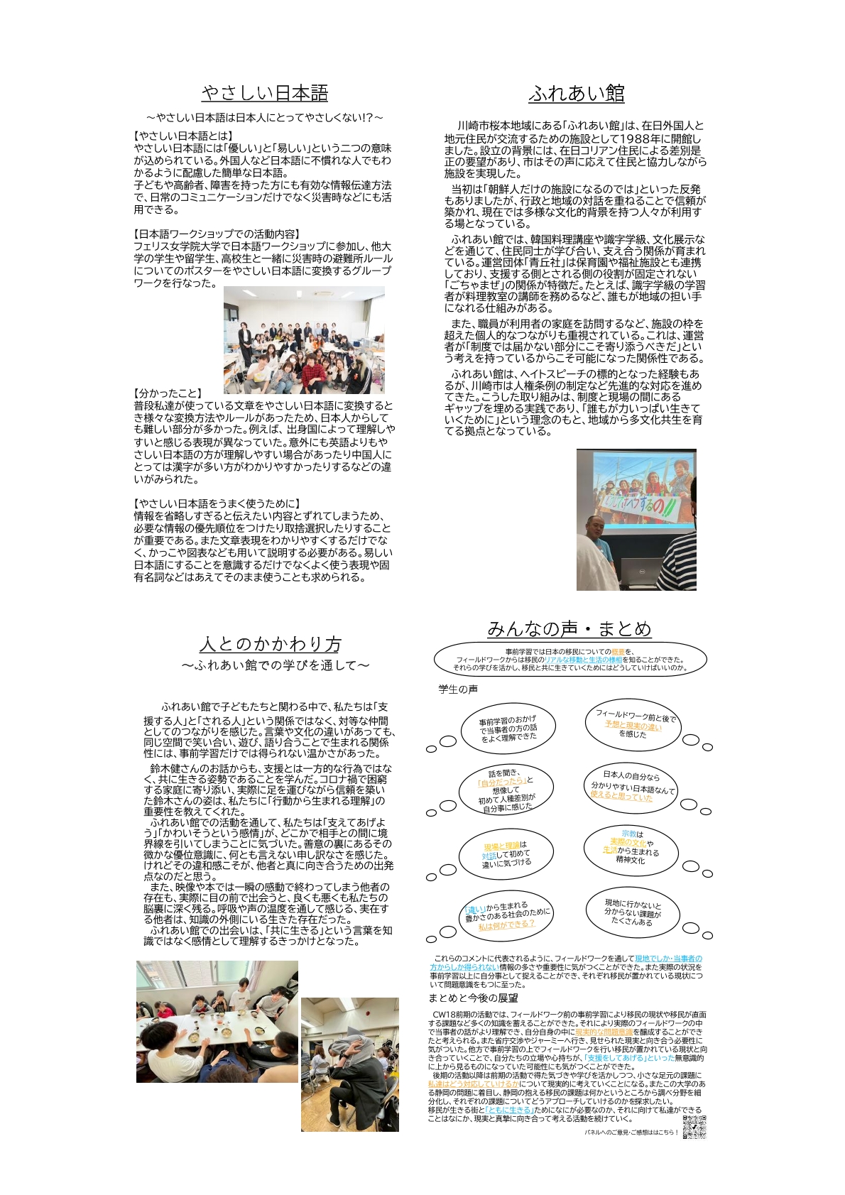 2025年度 CWポスター発表会 移民が生きる街と「ともに生きる」活動(ワーク18) 2026/01/05 2025年12月18日(木)大学会館ホールにて、2025年度CWポスター発表会を実施しました。発表会では以下のポスターが掲示されました。 【1枚目】 【2枚目】