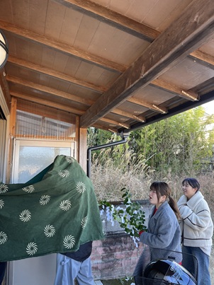 1月11日は小正月。大平には全部で11の地区がありますが、そのなかで唯一4区の地域(約120世帯)で伝統的に実施されている獅子舞神楽がこの日に行われました。大学生にも声をかけていただき、4人が活動に参加、一軒一軒声をかけながら周りました。