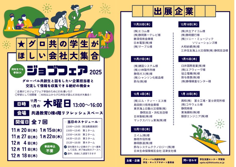 【学部生向】ジョブフェアの開催について(11月20日~1月22日 毎週木曜日 13:00-16:00)